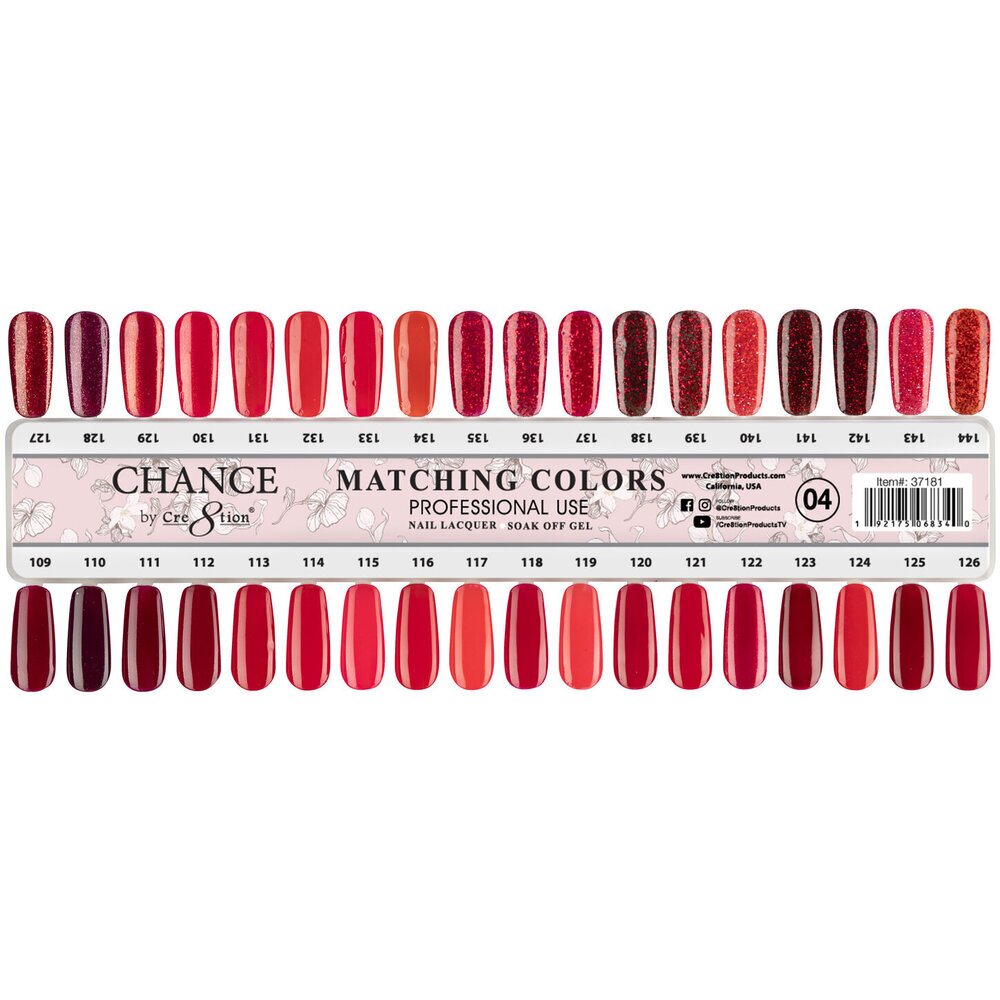 Chance Duo Soak Off Gel Polish + Nail Lacquer - 0.5 oz. Each / #260 by Cre8tion by Cre8tion. Chance Duo Gel & Nail Lacquer / Gel & Nail Lacquer .5 oz. each. Available 288 colors.