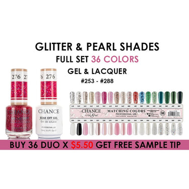 Chance Duo - Soak Off Gel Polish & Nail Lacquer 0.5 oz. Each / Glitter & Pearl Shades Collection - 35 colors #253 - #288
