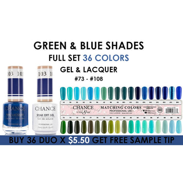 Chance Duo - Soak Off Gel Polish & Nail Lacquer 0.5 oz. Each / Green & Blue Shades Collection- 34 Colors #73 - #108