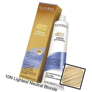Clairol Professional Creme Permanente - 10N Lightest Neutral Blonde / 2 oz. Elevate Your Professional Services with Clairol Professional Creme Permanente. Take your salon or spa to the next level with Clairol Professional Permanent Cream Hair Color. This top-of-the-line formula features a deep-conditioning SOY4PLEX complex that provides up to 2x more shine, leaving your clients with healthy-looking, radiant hair.