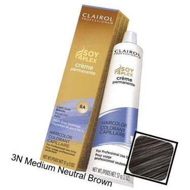 Clairol Professional Creme Permanente - 3N Medium Neutral Brown / 2 oz. Elevate Your Professional Services with Clairol Professional Creme Permanente. Take your salon or spa to the next level with Clairol Professional Permanent Cream Hair Color. This top-of-the-line formula features a deep-conditioning SOY4PLEX complex that provides up to 2x more shine, leaving your clients with healthy-looking, radiant hair.