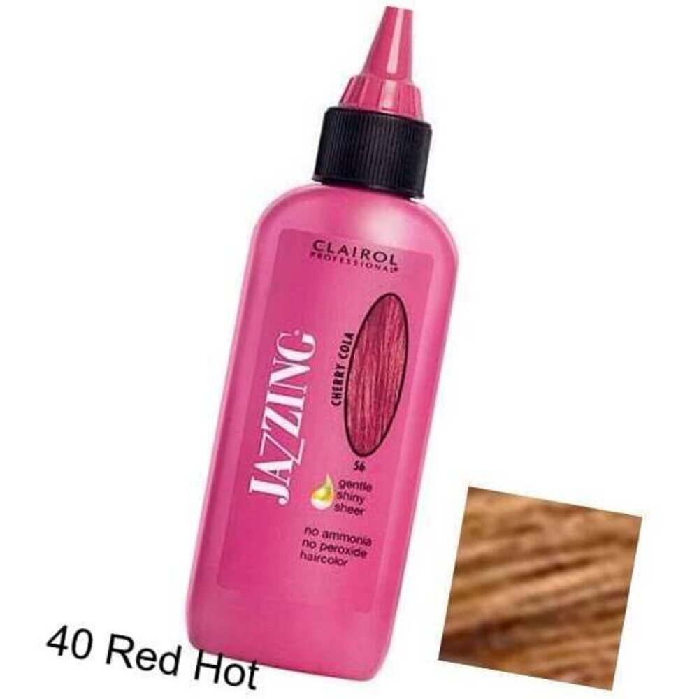 Clairol Professional Jazzing - 40 RED HOT / 3 oz. Jazz things up. Jazzing hair color adds rich, shiny color and can be used immediately after a relaxer service. Spice up your hair with Jazzing's gentle, shiny-sheer shades. Our ammonia- and peroxide-free colors give you the freedom to change things up whenever you like.