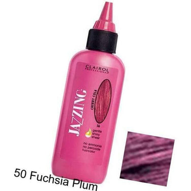 Clairol Professional Jazzing - 50 FUCHSIA PLUM / 3 oz. Jazz things up. Jazzing hair color adds rich, shiny color and can be used immediately after a relaxer service. Spice up your hair with Jazzing's gentle, shiny-sheer shades. Our ammonia- and peroxide-free colors give you the freedom to change things up whenever you like.