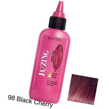 Clairol Professional Jazzing - 98 BLACK CHERRY / 3 oz. Jazz things up. Jazzing hair color adds rich, shiny color and can be used immediately after a relaxer service. Spice up your hair with Jazzing's gentle, shiny-sheer shades. Our ammonia- and peroxide-free colors give you the freedom to change things up whenever you like.