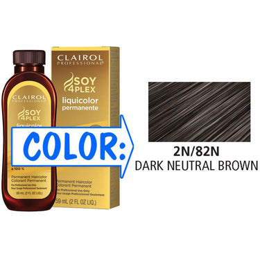 Clairol Professional Liquicolor Permanente - 2N/82N Dark Neutral Brown / 2 oz. A permanent liquid color available in 64 shades, ideal for quick application and coloring in between foils. Use for deep conditioning gray coverage, with 84% more conditioning than the leading professional cream. For even more conditioning, mix with Clairol Professional Color Serum.