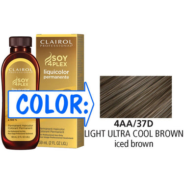 Clairol Professional Liquicolor Permanente - 4AA/37D Light Ultra Cool Brown / 2 oz. A permanent liquid color available in 64 shades, ideal for quick application and coloring in between foils. Use for deep conditioning gray coverage, with 84% more conditioning than the leading professional cream. For even more conditioning, mix with Clairol Professional Color Serum.