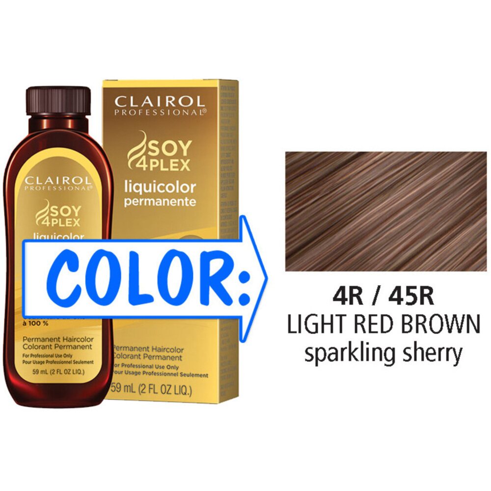 Clairol Professional Liquicolor Permanente - 4R/45R Light Red Brown / 2 oz. A permanent liquid color available in 64 shades, ideal for quick application and coloring in between foils. Use for deep conditioning gray coverage, with 84% more conditioning than the leading professional cream. For even more conditioning, mix with Clairol Professional Color Serum.