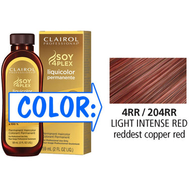 Clairol Professional Liquicolor Permanente - 4RR/204RR Light Intense Red / 2 oz. A permanent liquid color available in 64 shades, ideal for quick application and coloring in between foils. Use for deep conditioning gray coverage, with 84% more conditioning than the leading professional cream. For even more conditioning, mix with Clairol Professional Color Serum.