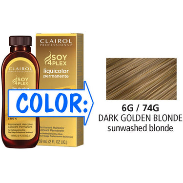 Clairol Professional Liquicolor Permanente - 6G/74G Dark Golden Blonde / 2 oz. A permanent liquid color available in 64 shades, ideal for quick application and coloring in between foils. Use for deep conditioning gray coverage, with 84% more conditioning than the leading professional cream. For even more conditioning, mix with Clairol Professional Color Serum.