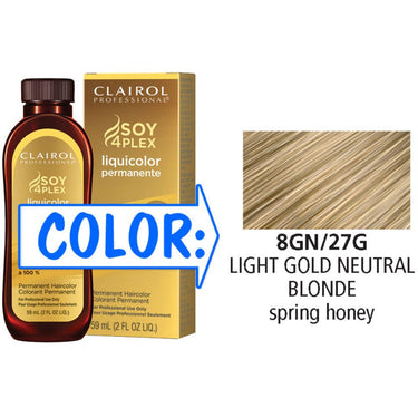 Clairol Professional Liquicolor Permanente - 8GN/27G Light Gold Neutral Blonde / 2 oz. A permanent liquid color available in 64 shades, ideal for quick application and coloring in between foils. Use for deep conditioning gray coverage, with 84% more conditioning than the leading professional cream. For even more conditioning, mix with Clairol Professional Color Serum.