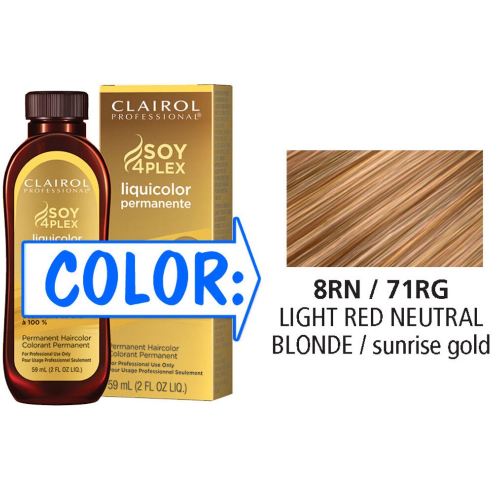Clairol Professional Liquicolor Permanente - 8RN/71RG Light Red Neutral Blonde / 2 oz. A permanent liquid color available in 64 shades, ideal for quick application and coloring in between foils. Use for deep conditioning gray coverage, with 84% more conditioning than the leading professional cream. For even more conditioning, mix with Clairol Professional Color Serum.