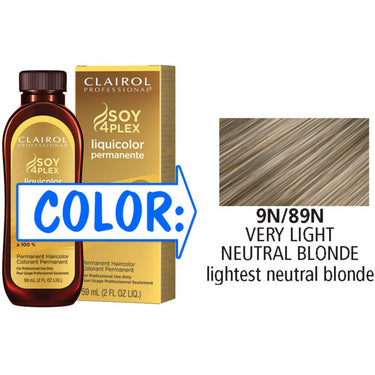 Clairol Professional Liquicolor Permanente - 9N/89N Very Light Neutral Blonde / 2 oz. A permanent liquid color available in 64 shades, ideal for quick application and coloring in between foils. Use for deep conditioning gray coverage, with 84% more conditioning than the leading professional cream. For even more conditioning, mix with Clairol Professional Color Serum.