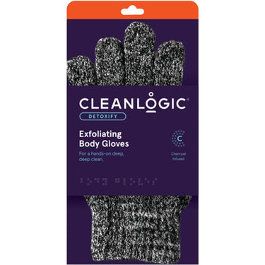 Cleanlogic Bath & Body Detoxify Exfoliating Body Gloves. Deeply cleanse, massage, and wash away toxins & impurities. Activated charcoal's absorption power boosts beauty benefits for the skin by drawing oil and dirt from clogged pores. Get a deeper clean to keep you looking and feeling amazing!
