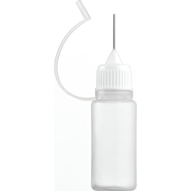Clear Dropper Bottle with White Screw-Top and Blunt Needle Tip - 10 mL. - 0.33 oz. / Case of 200. This 10 ml bottle with stainless steel blunt needle tip delivers a precise amount of liquid flow for various cosmetic applications including aromatherapy oils, liquid glitter, liquid makeup, tattoo artist ink and even fountain pen ink cartridges. Also, ideal for injecting or dispensing e-liquid oil into tanks and cartomizers accurately and cleanly. The rubber attachment ring closure covers the blunt needle tip and helps to prevent spills.