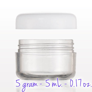 Clear Sample Jar with White Cap - 5 gram - 5 mL. - 0.17 oz. / 200 per Bag X 3 Bags = 600 Assembled Sample Jars