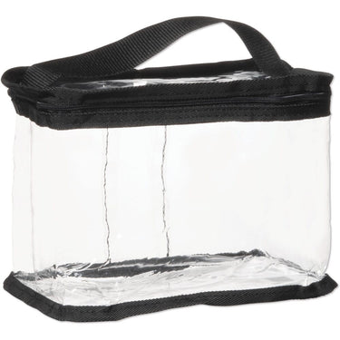 Clear Totes Train Case 7-1/2"L X 6-1/4"H X 5-1/2"D. Organizing your beauty products has never been easier with our Clear Totes Train Case! Say goodbye to digging through cluttered makeup bags and hello to quick access to all of your essentials. With a convenient carry handle and compact size, this train case is perfect for professionals on the go.