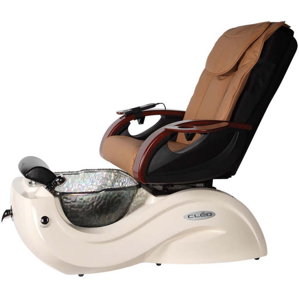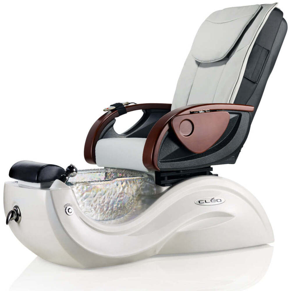 Cleo GX Pedicure Spa Chair with Glass Bowl by J&A. The New Cleo GX has a full shiatsu massage chair that provides a soft gentle touch, paired with an intuitive remote with five unique massage settings.