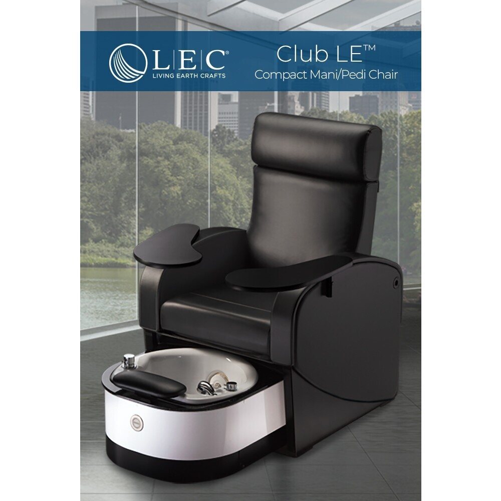 Club LE™ Pedicure Chair by Living Earth Crafts. The Club Chair LE™ from Living Earth Crafts is the industry's most compact luxury mani/pedi chair. The Club LE features a retractable, motorized, fully plumbed pedicure bowl. With a retracted footprint similar to that of a standard armchair, the Club Chair LE is an incredible space saver, and an easy replacement for uncomfortable banquettes. Its versatility maximizes revenue through flexible scheduling for either manicures, pedicures, or express combo treatments. This luxurious, bespoke chair is hand upholstered from a broad array of fabric selections and finishes. Electronic chair, bowl and footrest adjustments enable perfect client and technician ergonomics. The hidden pedicure unit features whisper quiet, reliable pipeless hydrotherapy, and is packed with practical features including a hand sprayer, power remote drain, and convenient plumbing connects.