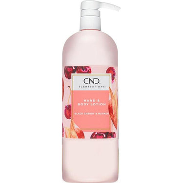 CND Black Cherry & Nutmeg Creative Scentsations Hand & Body Lotion / 31 fl. oz. CND Black Cherry & Nutmeg Creative Scentsations Hand & Body Lotion is a collection of aromatherapeutic moisturizers with a harmonious balance of scents that are quickly absorbed into the skin, leaving it soft, refreshed and delicately scented. Contains vitamins A and E and Aloe Vera for extra moisturizing. 31 fl. oz.