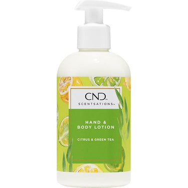 CND Citrus & Green Tea Creative Scentsations Hand & Body Lotion / 31 fl. oz. CND Citrus & Green Tea Creative Scentsations Hand & Body Lotion is a collection of aromatherapeutic moisturizers with a harmonious balance of scents that are quickly absorbed into the skin, leaving it soft, refreshed and delicately scented. Contains vitamins A and E and Aloe Vera for extra moisturizing. 31 fl. oz.