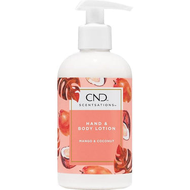 CND Mango & Coconut Creative Scentsations Hand & Body Lotion / 8.3 oz. CND Mango & Coconut Creative Scentsations Hand & Body Lotion is a collection of aromatherapeutic moisturizers with a harmonious balance of scents that are quickly absorbed into the skin, leaving it soft, refreshed and delicately scented. Contains vitamins A and E and Aloe Vera for extra moisturizing. 8.3 fl. oz.