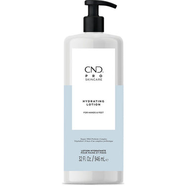 CND Pro Skincare - Hydrating Lotion for Hands / 32 fl oz. - 946 mL. Indulge in CND™ PRO SKINCARE, a complete line of prebiotic-enriched spa products for healthier-looking skin. The entire collection of professional-quality vegan skincare is formulated with natural origin ingredients, dermatologist tested and made for all skin types. Invigorating from beginning to end, these elevated services make for truly premium manicure and pedicure experiences.