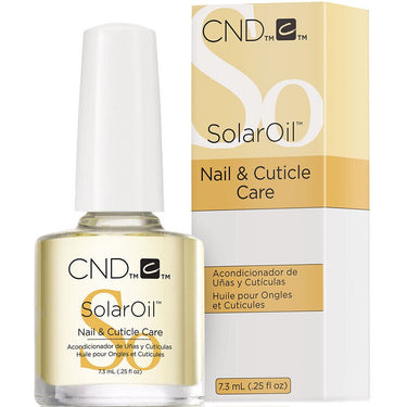 CND Service Essentials - SolarOil / 0.25 fl. oz. CND Service Essentials SolarOil is a conditioning treatment that penetrates deeply and quickly, softening cuticles and promoting strong, flexible natural nails and nail enhancements. Its natural blend of Jojoba Oil, Sweet Almond Oil and Vitamin E creates a light, penetrating oil with antioxidant agents.