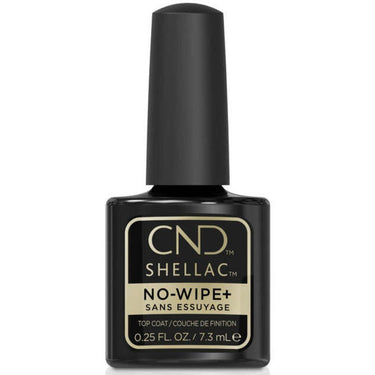 CND Shellac No-Wipe+ Top Coat / 0.25 oz. CND Shellac No-Wipe+ Top Coat provides a long-lasting gloss shine, with no IPA wipe required! This unique formula results in no top film and is compatible with Shellac Color Coat and Base Coat. Plus, it allows easier removal and low odor for the perfect high-shine mani! Available in 0.25 fl. oz. and 0.42 fl. oz.