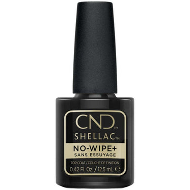 CND Shellac No-Wipe+ Top Coat / 0.42 oz. CND Shellac No-Wipe+ Top Coat provides a long-lasting gloss shine, with no IPA wipe required! This unique formula results in no top film and is compatible with Shellac Color Coat and Base Coat. Plus, it allows easier removal and low odor for the perfect high-shine mani! Available in 0.25 fl. oz. and 0.42 fl. oz.