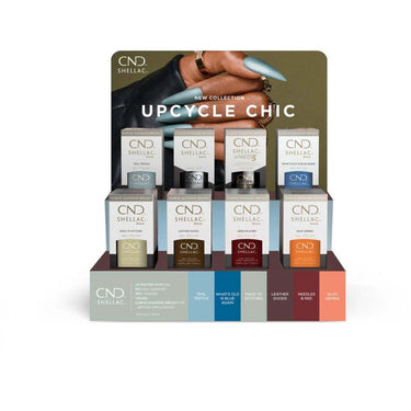 This CND Shellac Upcycle Chic POP 16-Piece Display includes 2 each of following colors and coats: