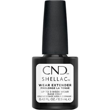 CND Shellac Wear Extender Base Coat / 0.42 fl. oz. - 12.5 mL. CND Shellac Wear Extender Base Coat includes a new superior curve hugging brush for premium performance! 200+ Bristles that adapt to the nail for better coverage. Each filament has a solid, round section that helps provide a smooth and even application for full coverage and better color application.
