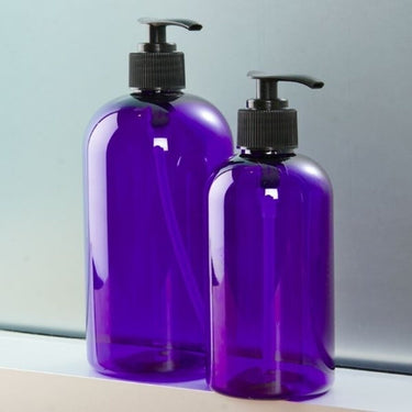 Cobalt Blue PET Plastic Bottle with Pump. Embark on a journey of convenience and elegance with the Cobalt Blue PET Plastic Bottle with Pump. This sleek and stylish bottle is designed for spas, salons, and beauty professionals who prioritize functionality and aesthetic appeal. Whether you're creating a tranquil environment at the spa or ensuring your salon's back bar is both practical and visually striking, this bottle provides the perfect blend of form and function. Ideal for a wide variety of personal care products, this bottle allows for easy dispensing, ensuring a smooth and seamless client experience.These bottles not only stand out with their vibrant cobalt blue hue but also offer excellent protection for the products inside, safeguarding against UV damage and preserving the integrity of your high-end beauty formulations.