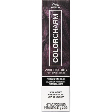 Wella Colorcharm Vivid Darks Viva Violet. Bring your clients' hair dreams to life with Wella Colorcharm Vivid Darks in Viva Violet, the revolutionary permanent color formulated to achieve high-impact, vivid tones on naturally dark hair without the need for harsh bleaching. Crafted to provide not just color but also care, this transformative dye ensures stunning, luminous results while preserving the hair's integrity and health.
