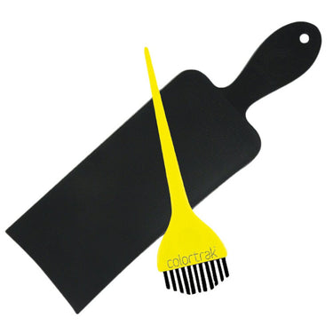 Colortrak Balayage Board & Brush. Apply color with ease by using this professional balayage board and brush set by Colortrak. This balayage board is slightly curved on two sides to better suit the clients head shape and also has one textured side and one smooth side for versatility. The board handle allows for comfort and stability. Included in this set is a Dimensional Balayage Brush, which is designed with ultra-soft, peaked feather bristles for line diffusion and blending.