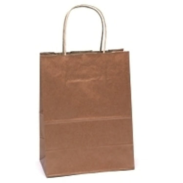 Copper Solid Gift Bag 7.75" x 3.75" x 9.75". Sturdy and very versatile, these solid gift bags have twisted paper handles. Custom imprinting is available. Copper. Sold individually. 7.75" x 3.75" x 9.75".