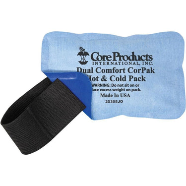 Corpak Hot/Cold Pack with Strap 3" X 5". Corepak Hot/Cold Pack with Strap Core Products' ground-breaking concept of simple, regulated hot/cold therapy comes to life with the introduction of the Dual Comfort Pack, the all- in-one tool which delivers proper hot/cold therapy throughout the full range of treatment, from acute to full recovery/maintenance. The pack, which is constructed of two different treatment surfaces, offers flexibility unavailable with any other product. The Dual Comfort Pack's high-nap treatment surface provides exceptional slow release of heat or cold for extended therapeutic benefit, and also allows fastening of the elastic strapping system virtually anywhere on its surface. The frost-free low-nap surface allows rapid transmission of cold for quick results on acute injuries. Finally, our innovative integrated strapping system allows this pack to be properly placed anywhere relief or therapy is required.