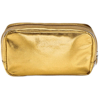 Cosmetic Bag - Gold / 24 Pack. Perfect for promotional giveaways or for retail sale, this gold cosmetic bag with zipper closure is just the right size to carry an assortment of makeup essentials.