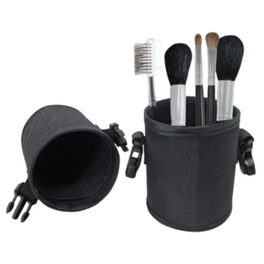 Cosmetic Brush Set / 5 Brushes. This cosmetic brush set comes packed in a 2-piece make-up brush cup holder that can sit on any workspace.