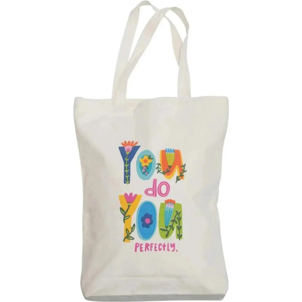 While functionality is key, this tote doesnt compromise on style. The bold, fun design featuring the phrase "You do you perfectly." is adorned with colorful flowers, making it an uplifting accessory that complements your personality. Its not just a bag; its a statement piece. This tote adds a pop of color to your professional attire, showcasing your attention to detail and personal style. Whether you're running errands or meeting with clients, this tote speaks volumes about who you are and how you approach your work.