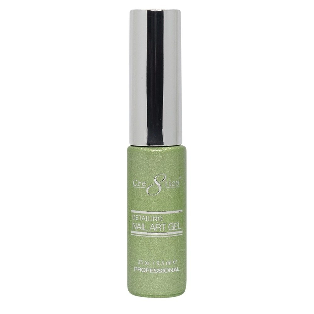 Cre8tion Detailing Nail Art Gel Striper - 40 Green Platinium / 0.33 oz. by Cre8tion. The Cre8tion Nail Art Gel Thin Detailer allows nail artists to create thin precise brush strokes like a stripe nail design. Detailing Nail Art Gel is highly pigmented with a thin stripe brush for precise nail details
