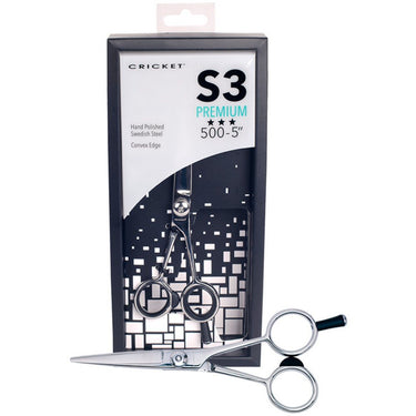 Cricket S3 Premium 500 Shears / 5". Our S3 Premium Shears are hand-polished, high-performance Swedish Steel shears that utilize innovative steel treatments which positively alter the steel ensuring a longer blade life. Blades are forged to the optimal hardness, ensuring they are not too hard, which could result in cracks, and not too soft where the sharp edge can collapse. We are proud to offer a high quality shear that incorporates Swedish Steel technology and is priced to fit all budgets.