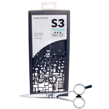Cricket S3 Premium 550 Shears / 5.5". Our S3 Premium Shears are hand-polished, high-performance Swedish Steel shears that utilize innovative steel treatments which positively alter the steel ensuring a longer blade life. Blades are forged to the optimal hardness, ensuring they are not too hard, which could result in cracks, and not too soft where the sharp edge can collapse. We are proud to offer a high quality shear that incorporates Swedish Steel technology and is priced to fit all budgets.