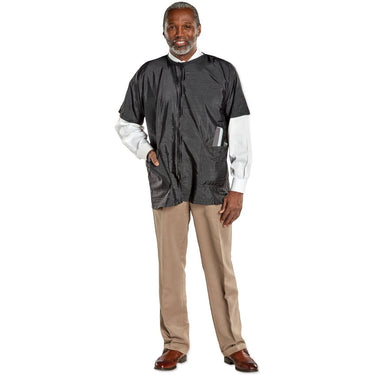 Crinkle Nylon Barber Jacket - Extra Large. Soft, durable, 100% lightweight crinkle nylon barber jacket with 2 front pockets. Machine washable . Zipper closure.