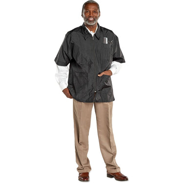 Crinkle Nylon Barber Jacket - X-Large. Soft, durable, 100% crinkle nylon barber jacket with zipper closure and 3 front pockets. Machine washable.