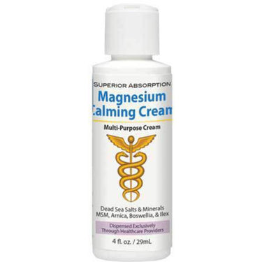 CryoDerm® Magnesium Calming Cream / 4 oz. CryoDerm® Magnesium Calming Cream is an an all purpose massaging cream that helps detoxify the body. The key ingredients are harvested from the Dead Sea where the mineral content is at its highest containing 21 minerals. These minerals naturally occur in our bodies and are lost throughout the day, so they must be replensihed. They help to treat, detoxify and cleanse our bodies. Magnesium calms nerves and muscles, aids in the reduction of cramping and hypertonicity, combats stress and fluid retention. Calcium is effective at preventing water retention, increasing circulation, and strengthening bones and nails.