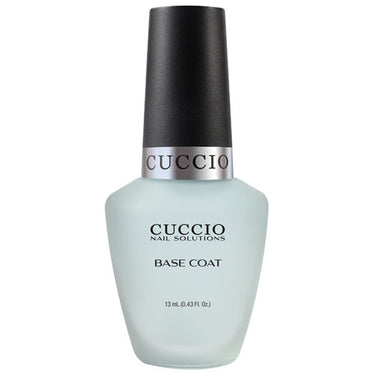 Cuccio Base Coat / 0.34 oz. Cuccio Base Coat lays down binding layers to prepare the nail for color. Nail Solutions are designed to meet specific needs of every type of nail client or use as maintenance after salon/spa care to grow longer, stronger, healthy natural nails. .34 oz.