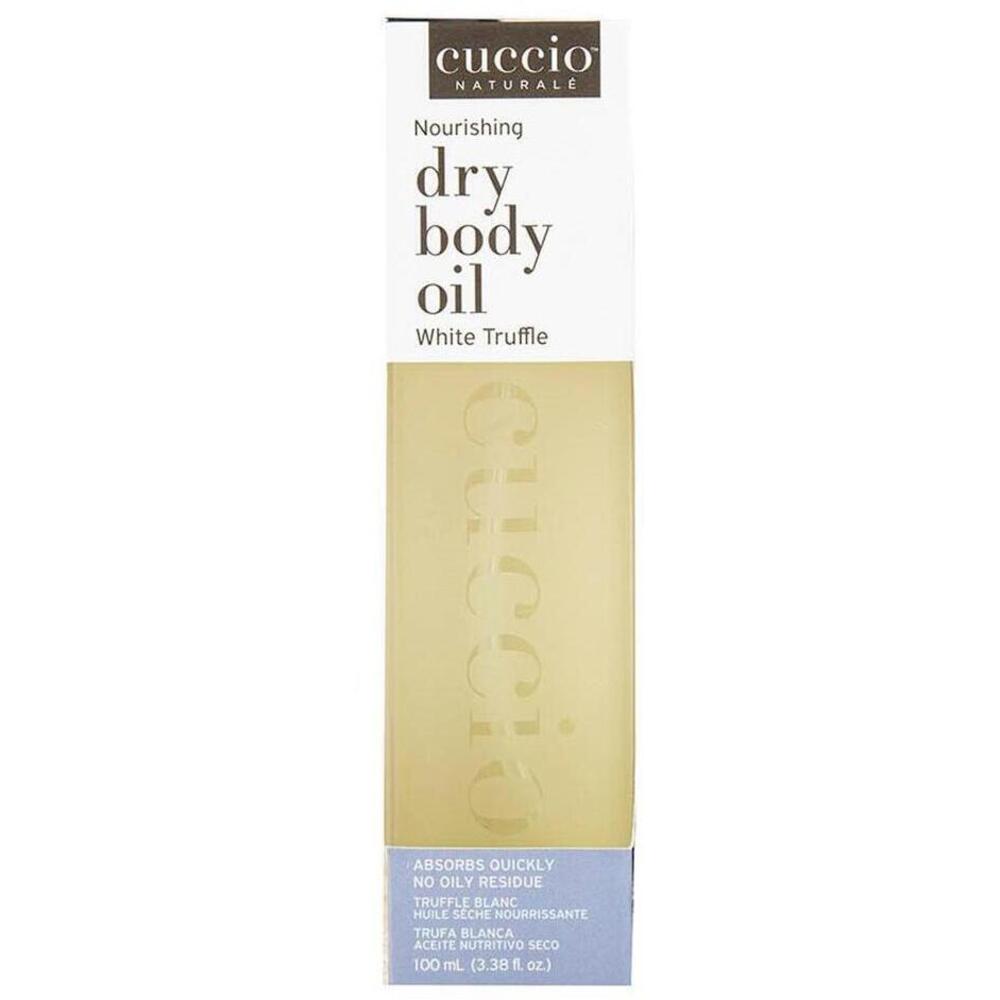Cuccio Dry Body Oil - White Truffle / 3.38 fl. oz. - 100 mL. Offer the beauty of soft, hydrated skin with Cuccio Dry Body Oil. This lightweight oil absorbs faster with greater hydration and no oily residue. 3.38 fl oz.