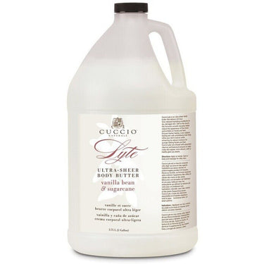 Cuccio Naturale Lyte Ultra-Sheer Body Butter - Vanilla Bean & Sugarcane / 1 Gallon. Cuccio Naturale Lyte Ultra-Sheer Body Butter delivers 24-hours of time-released moisture to soften extremely dry skin.