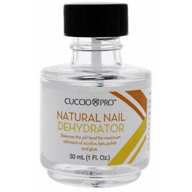 Cuccio Pro - Natural Nail Dehydrator / 1 oz. The perfect foundation for flawless manicures and pedicures, Cuccio Pro Natural Nail Dehydrator ensures your polish and nail enhancements adhere beautifully and last longer. This powerful solution balances the pH level of your nails, helping to remove oils and moisture that can interfere with adhesion. Designed for professionals who demand nothing but the best for their clients, this dehydrator is an essential part of every nail care routine.