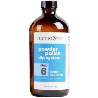 Cuccio Pro - Step 6 Powder Polish Dip System Brush Cleaner. As every beauty professional knows, clean tools are crucial for ensuring high-quality results with every client. When it comes to keeping your brushes in pristine condition, Cuccio Pro™ Step 6 Powder Polish Dip System Brush Cleaner is the ideal solution. Specially designed to remove any lingering powder residue after the application process, this product ensures that your brushes are spotless and ready for use againpreserving their longevity and performance. With a generous 16 fl. oz. of product, this Brush Cleaner is the perfect refill for your salon or spa, helping maintain the cleanliness of your tools while ensuring smooth and precise applications every time.